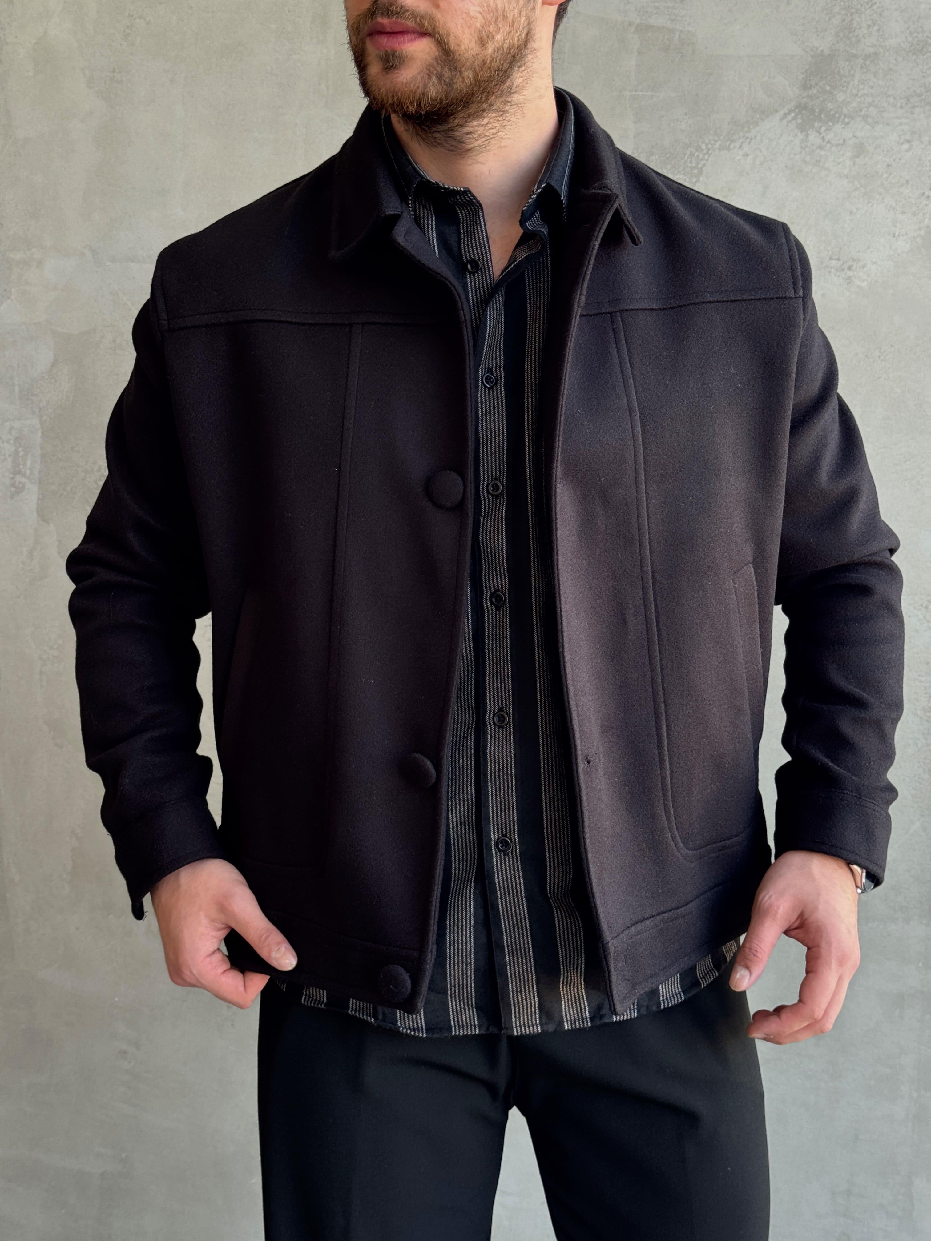 Erkek Elit Seçim Oversize Kalıp Düğme Detaylı İçi Astarlı Kaşe Ceket-Siyah(E1501)
