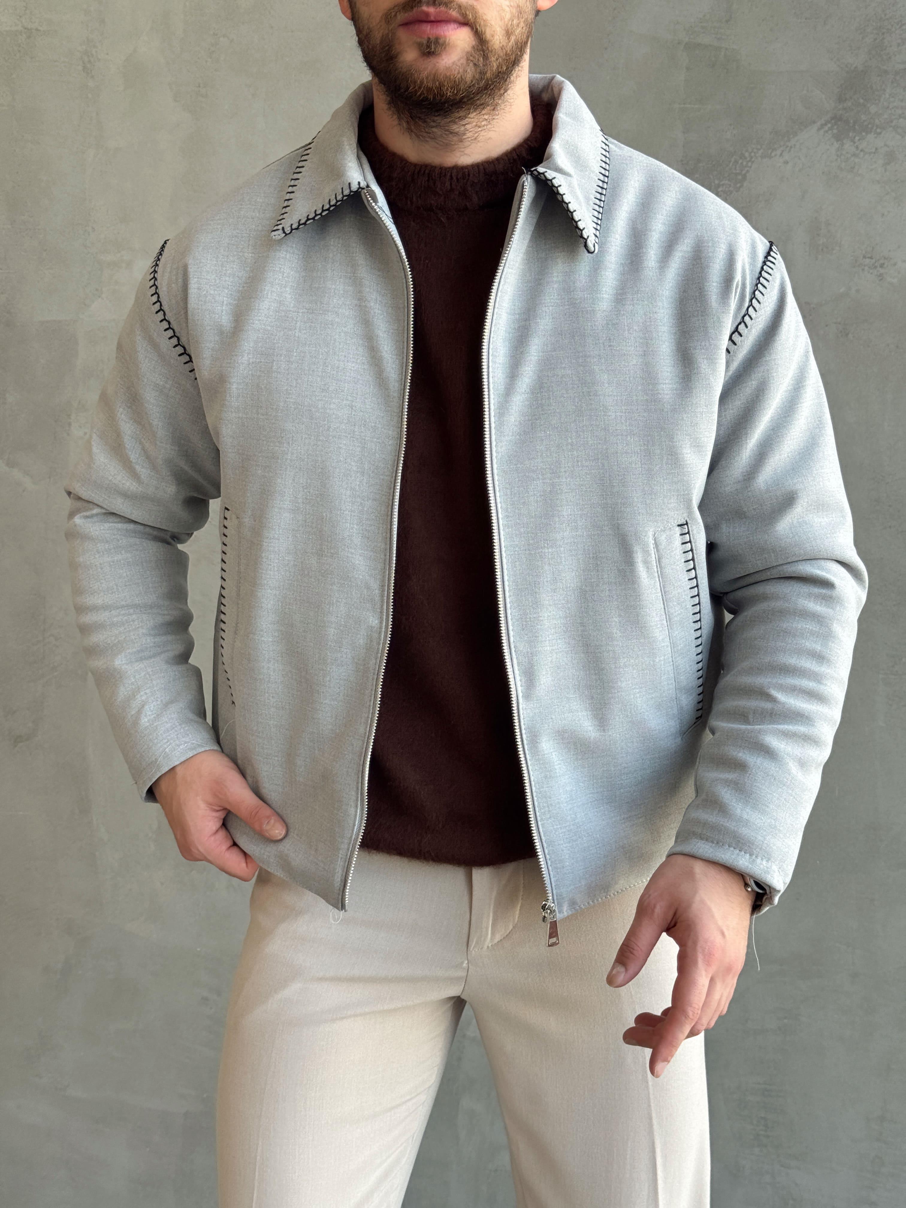 Erkek Elit Tasarım Oversize Kalıp Dikiş Detaylı İçi Elyaflı Ceket-Gri(E1500)