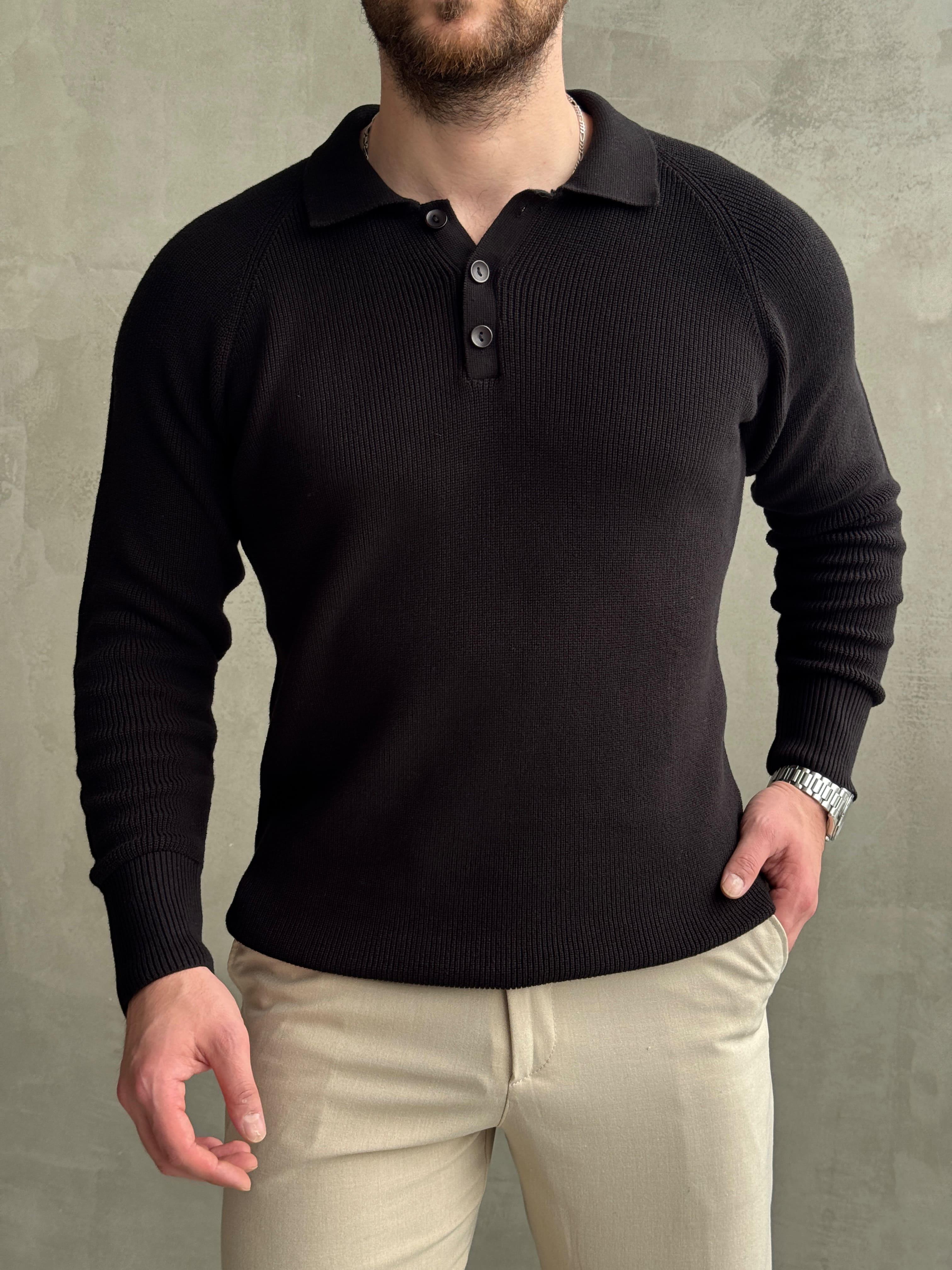 Tanım : Erkek Elit Tasarım Regular Fit Düğme Detaylı Pola Yaka Triko Kazak