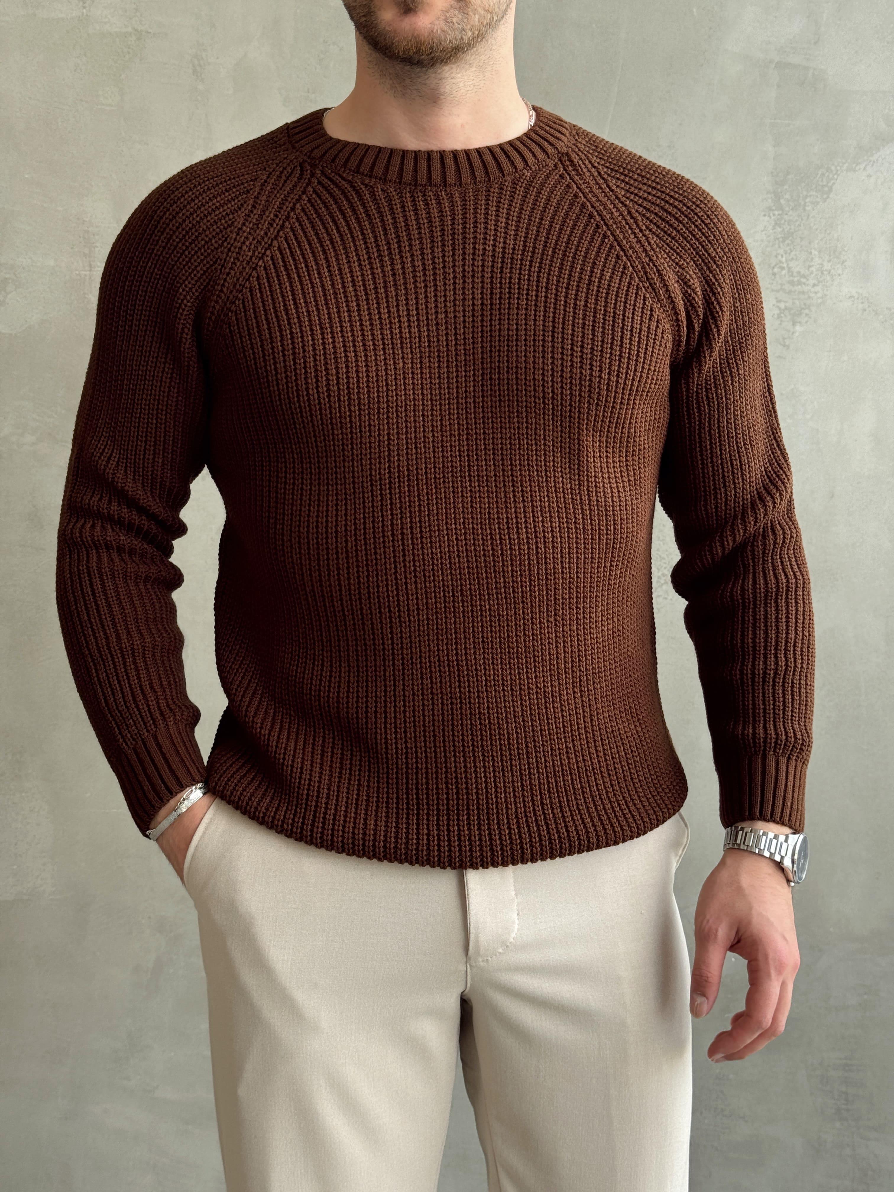 Tanım : Erkek Geleneksel Tarz Oversize Kalıp Bisiklet Yaka Selanik Örmek Triko Kazak
