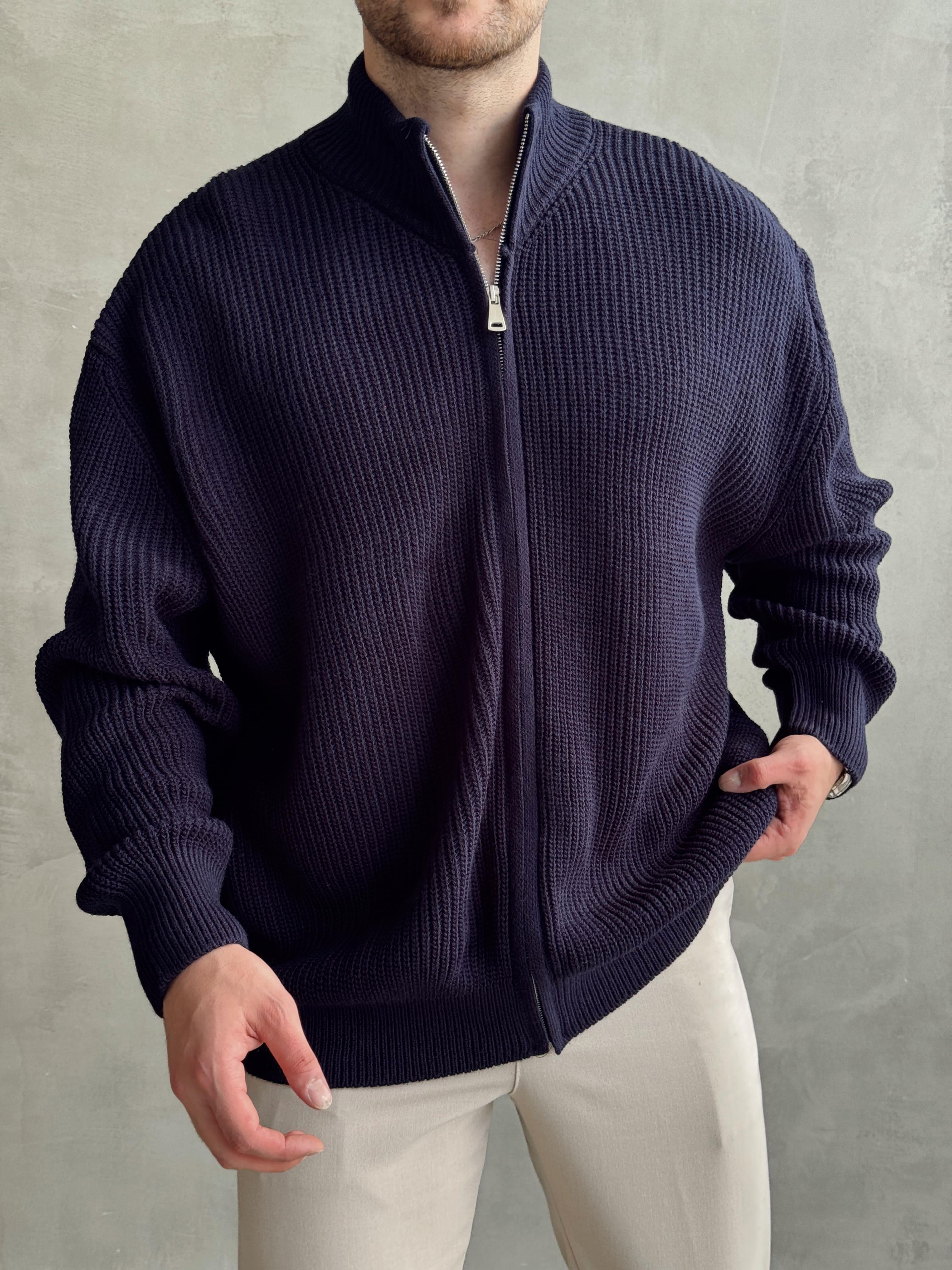 Tanım : Erkek Geleneksel Tarz Oversize Kalıp Yarım Boğazlı Fermuar Detay Örme Triko Hırka