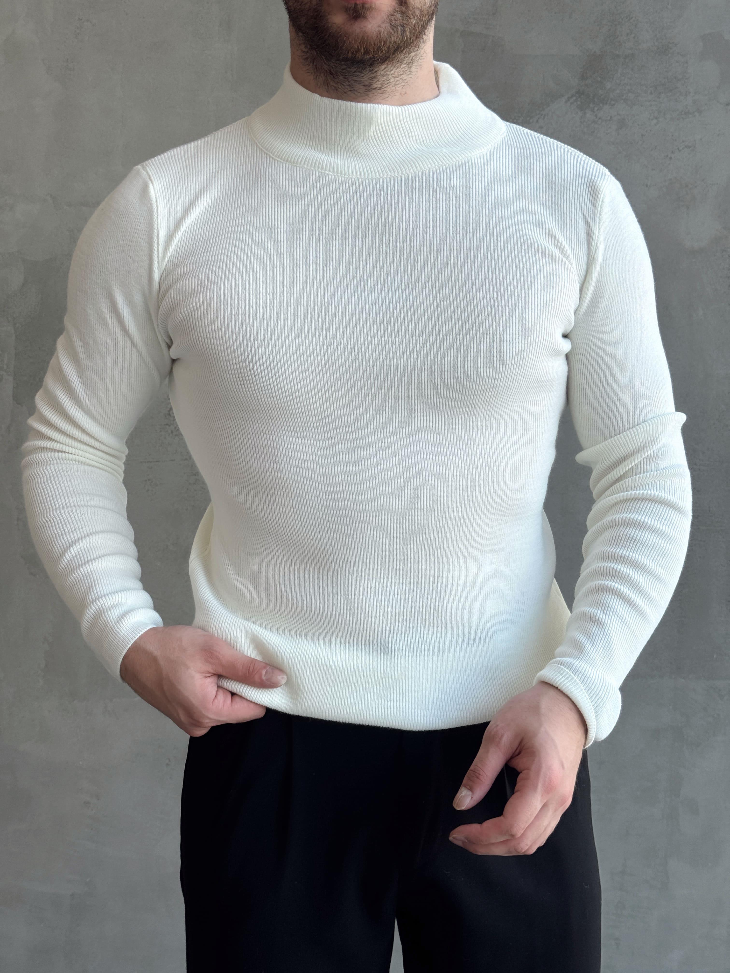 Erkek Minimalist Slim Fit Yarım Boğazlı Triko Kazak-Ekru(E1487)