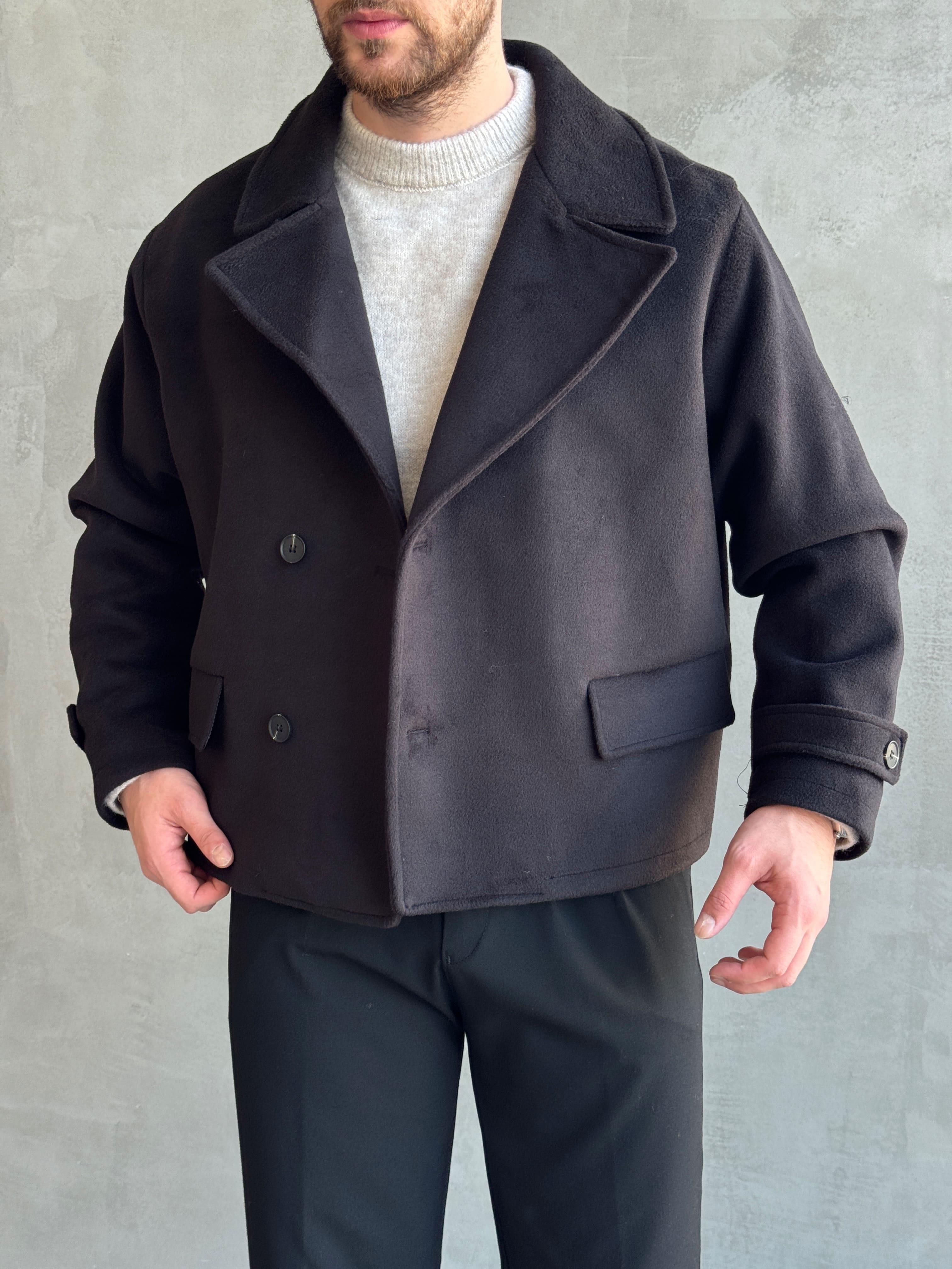 Erkek Özel Premium Seri Oversize Kalıp Cep Kapak Detaylı Yaka Detay Kuruvaze Kaşe Ceket-Siyah(E1502)Ketench