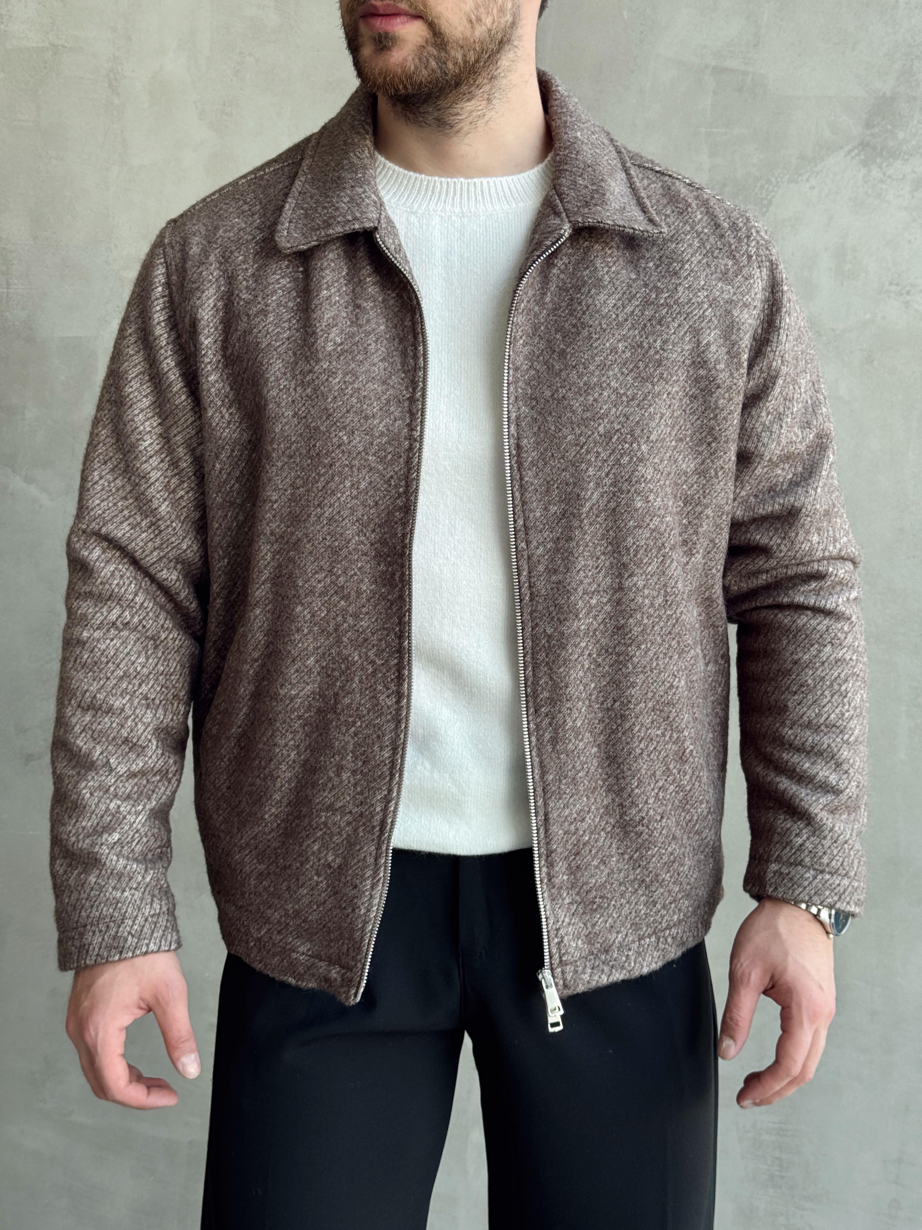 Erkek Özel Premium Seri Oversize Kalıp Desen Detaylı İçi Astarlı Kaşe Ceket-Kahverengi(E1497)