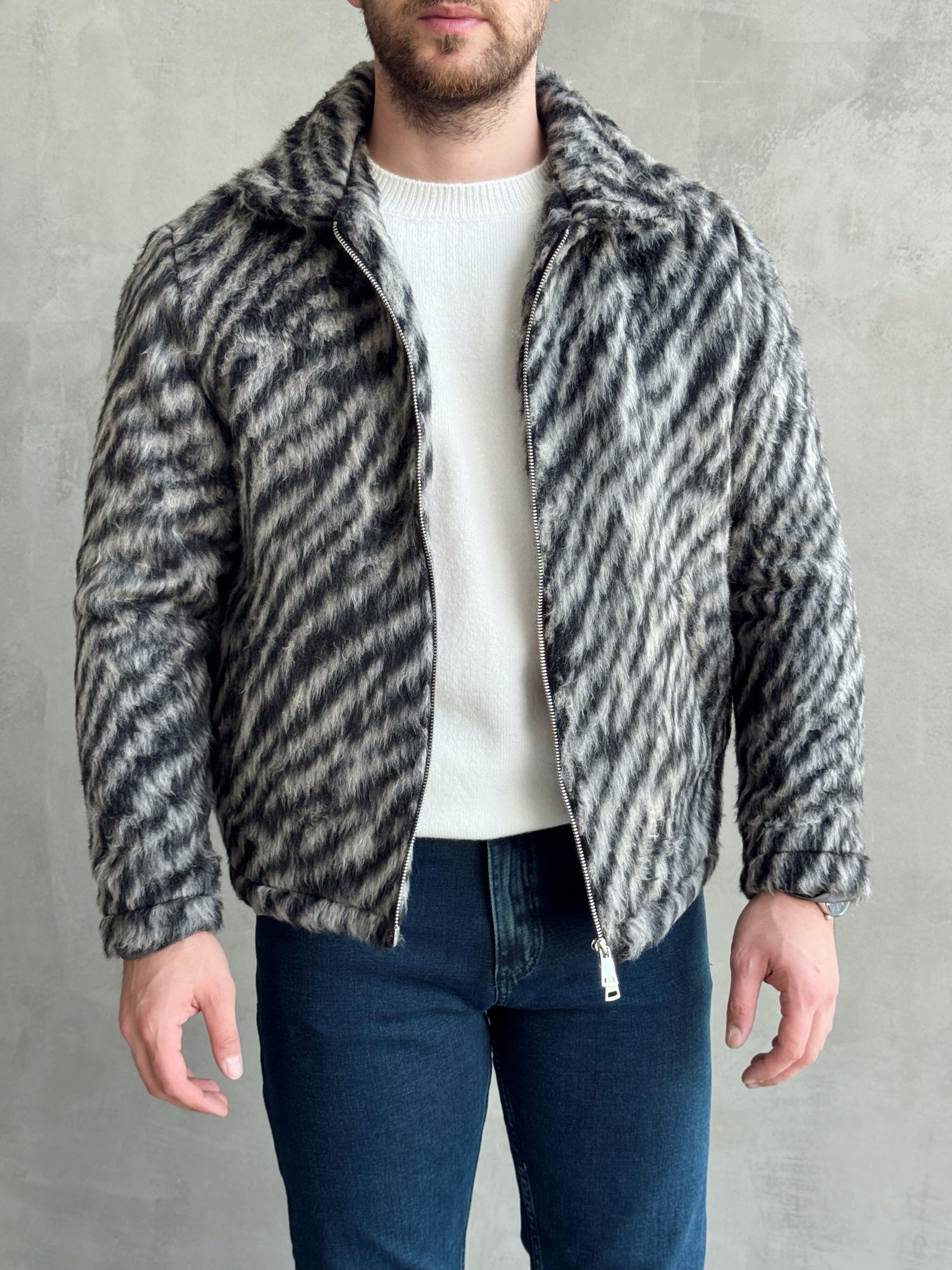 Erkek Özel Premium Seri Oversize Kalıp İçi Astarlı Zebra Desenli Ceket-Siyah(E1499)