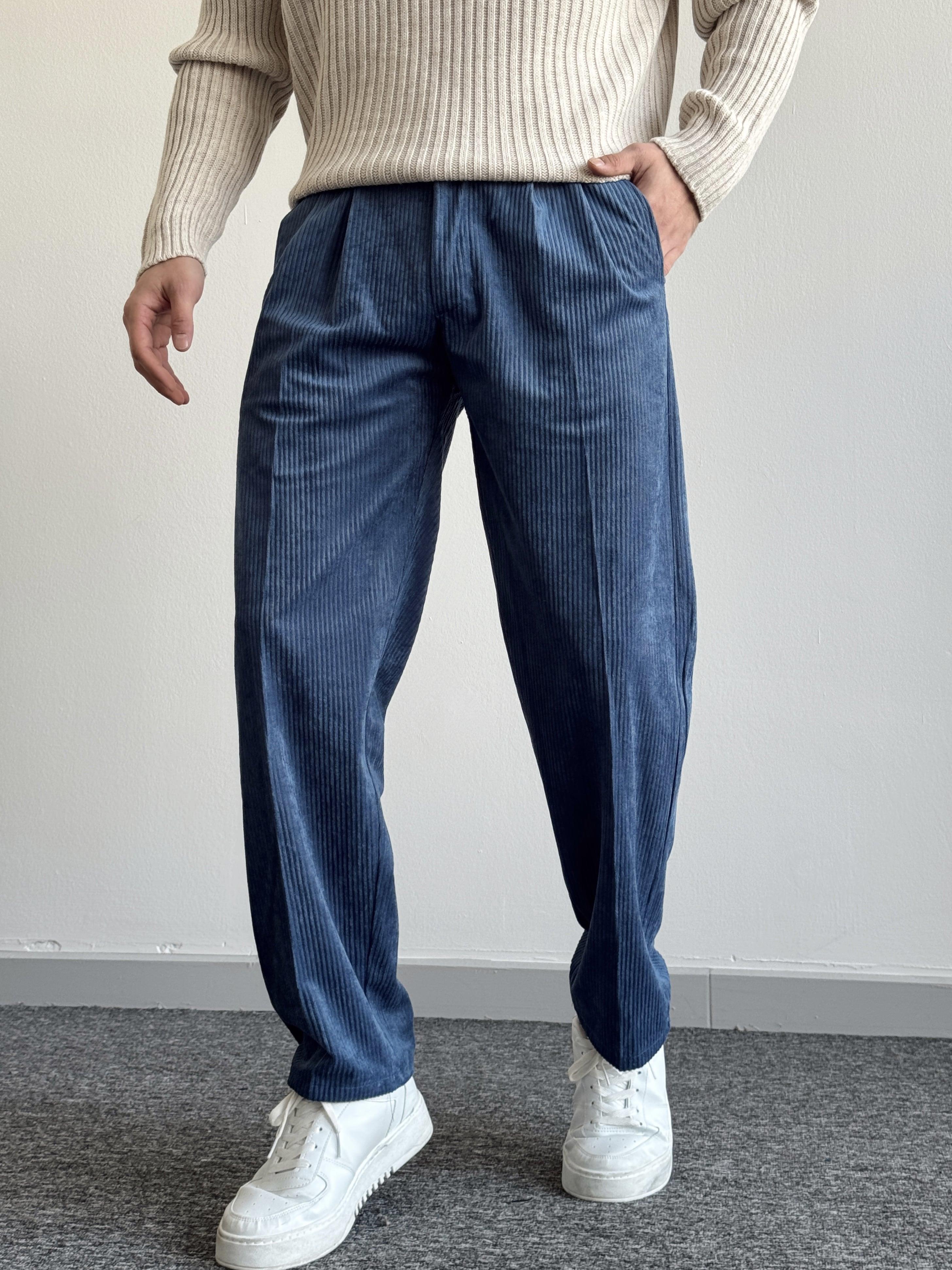 Erkek Pile Detaylı Beli Lastikli Baggy Kalıp Kadife Kumaş Pantolon-İndigo(E1192)Ketench