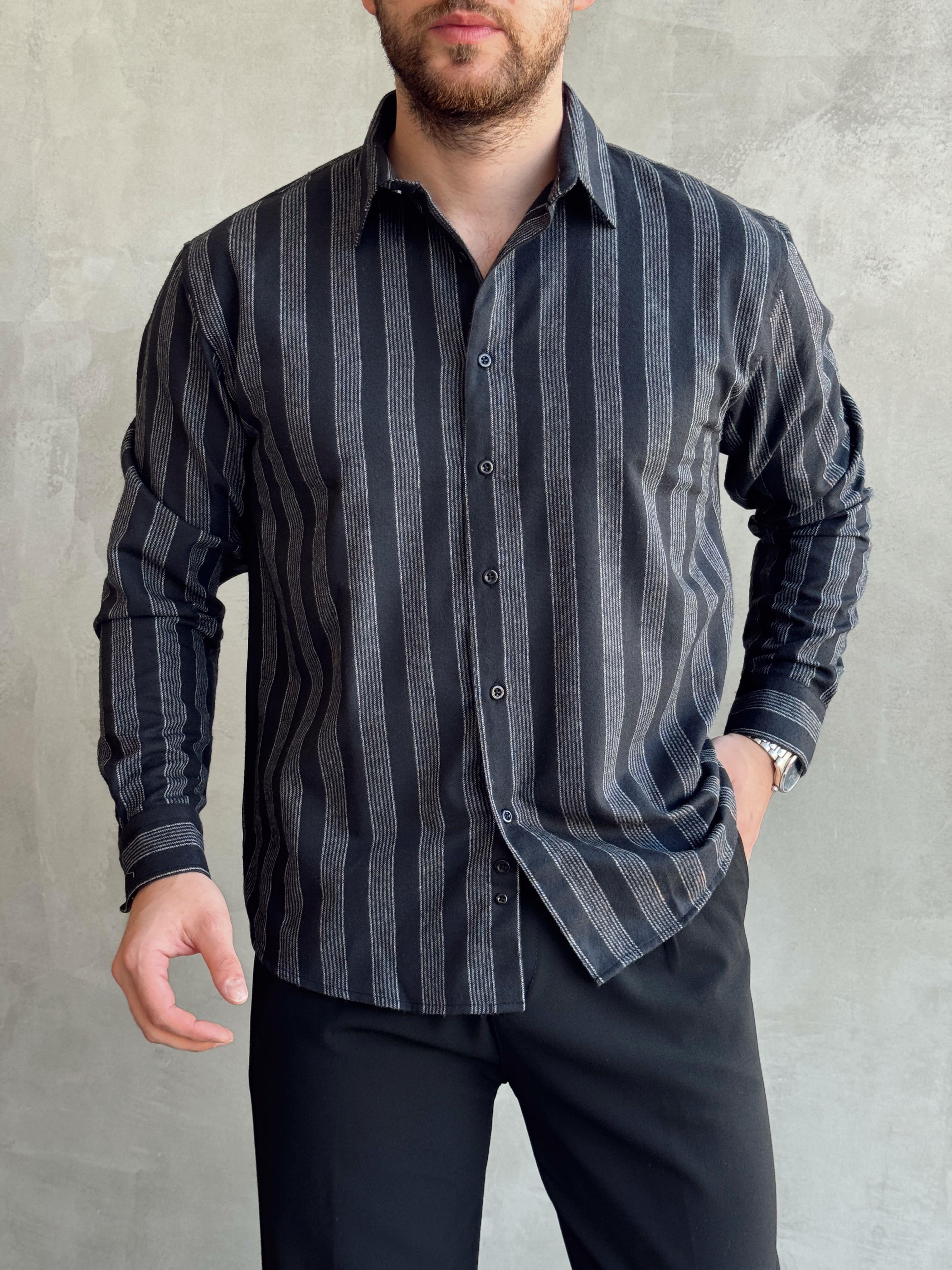 Tanım : Erkek Premium Kalite Oversize Kalıp Çizgi Detaylı Eşref Tek Kışlık Gömlek