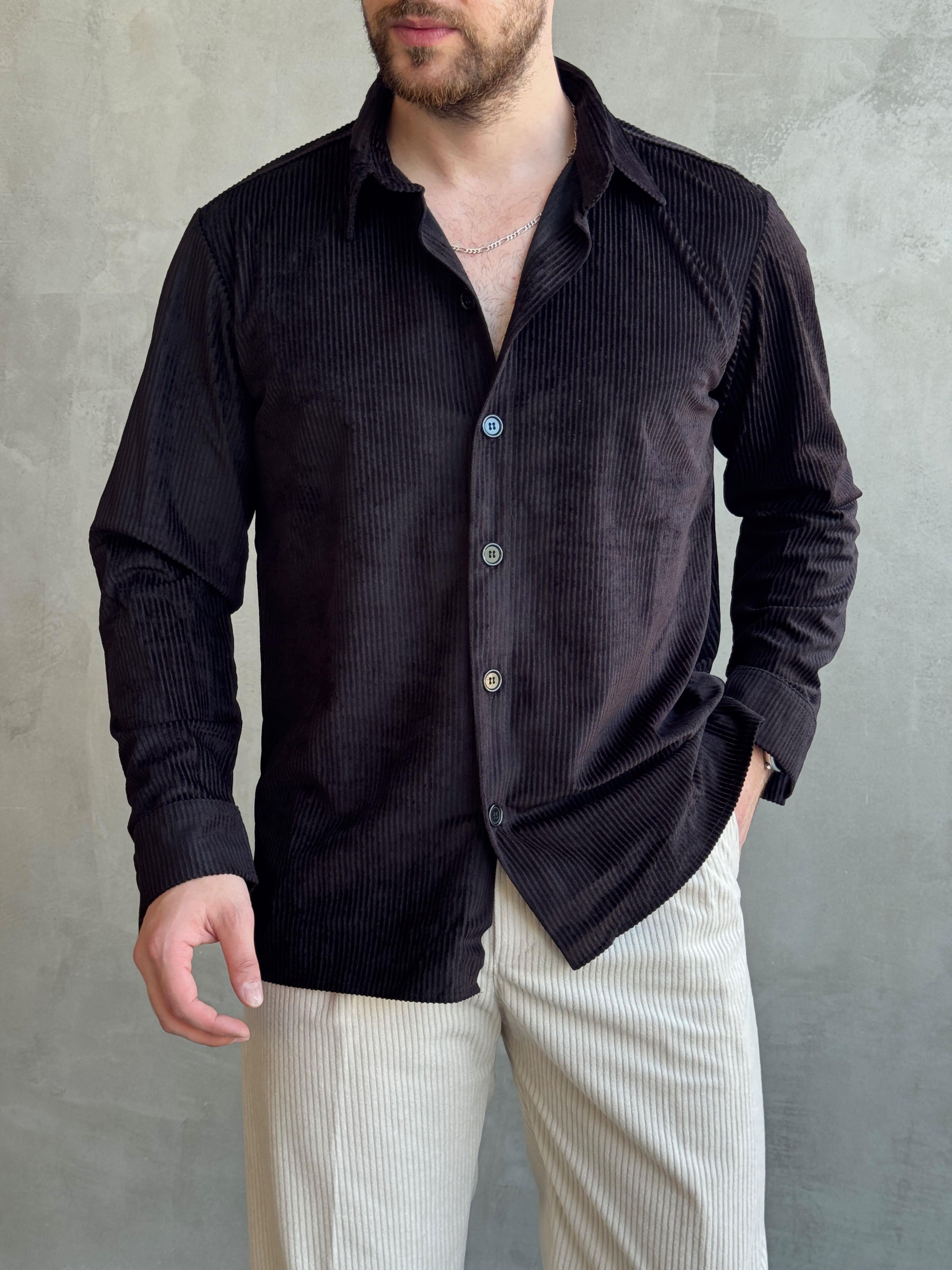 Erkek Premium Kalite Oversize Kalıp Kışlık Kalın Kadife Gömlek-Siyah(E1506)