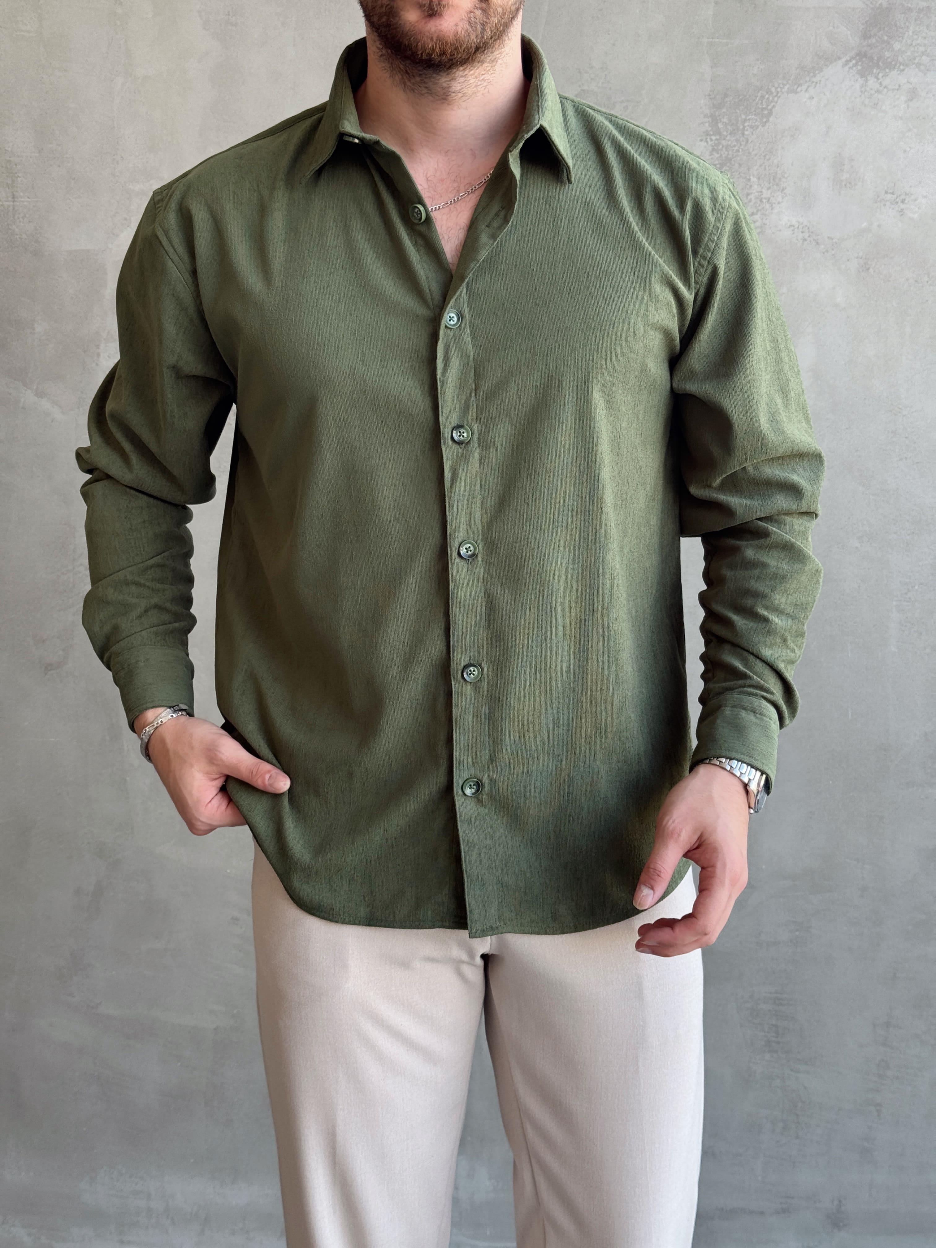 Erkek Premium Kalite Regular Fit İnce Fitilli Kadife Gömlek-Haki(E1485)Ketench