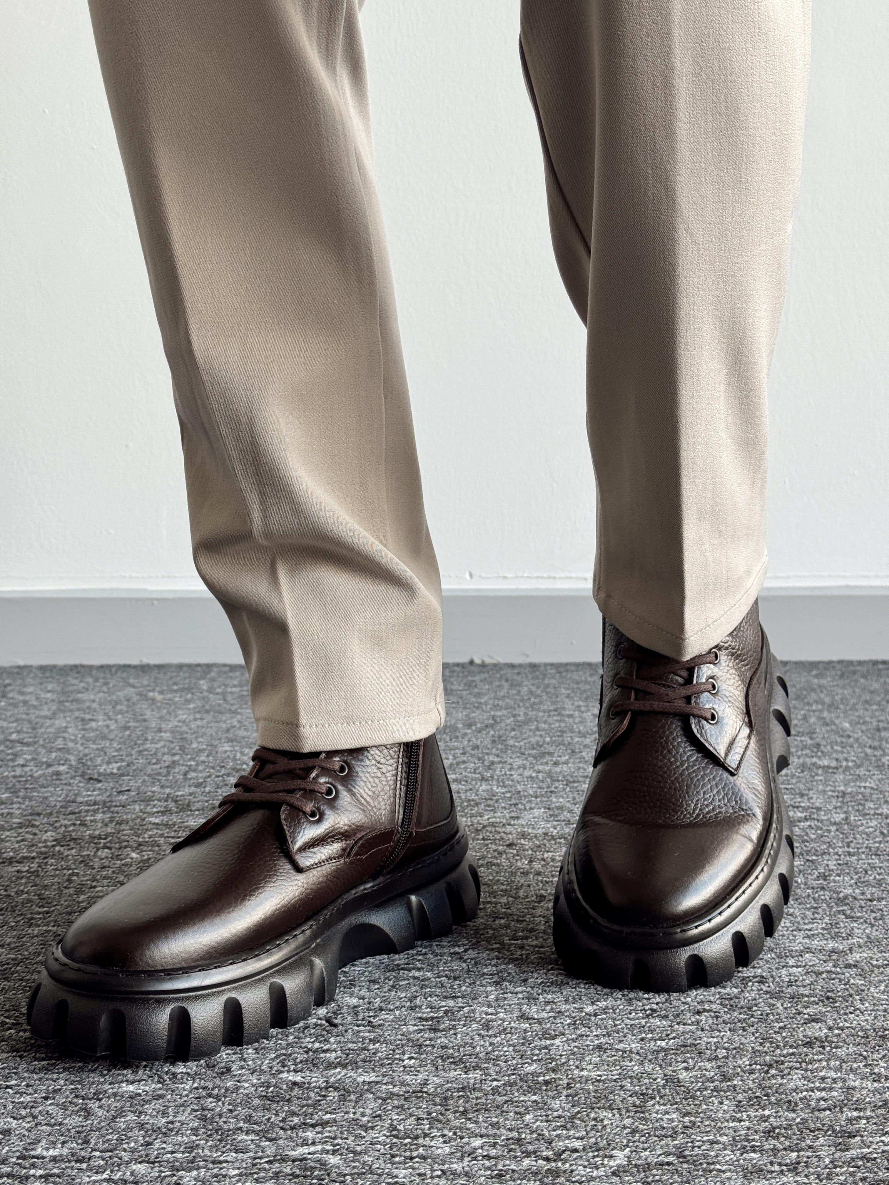 Erkek Premium Yüksek Kalite Garantili Soğuk Geçirmez Yüksek Taban Fermuar Detaylı Kışlık Bot-Kahverengi(E1218)