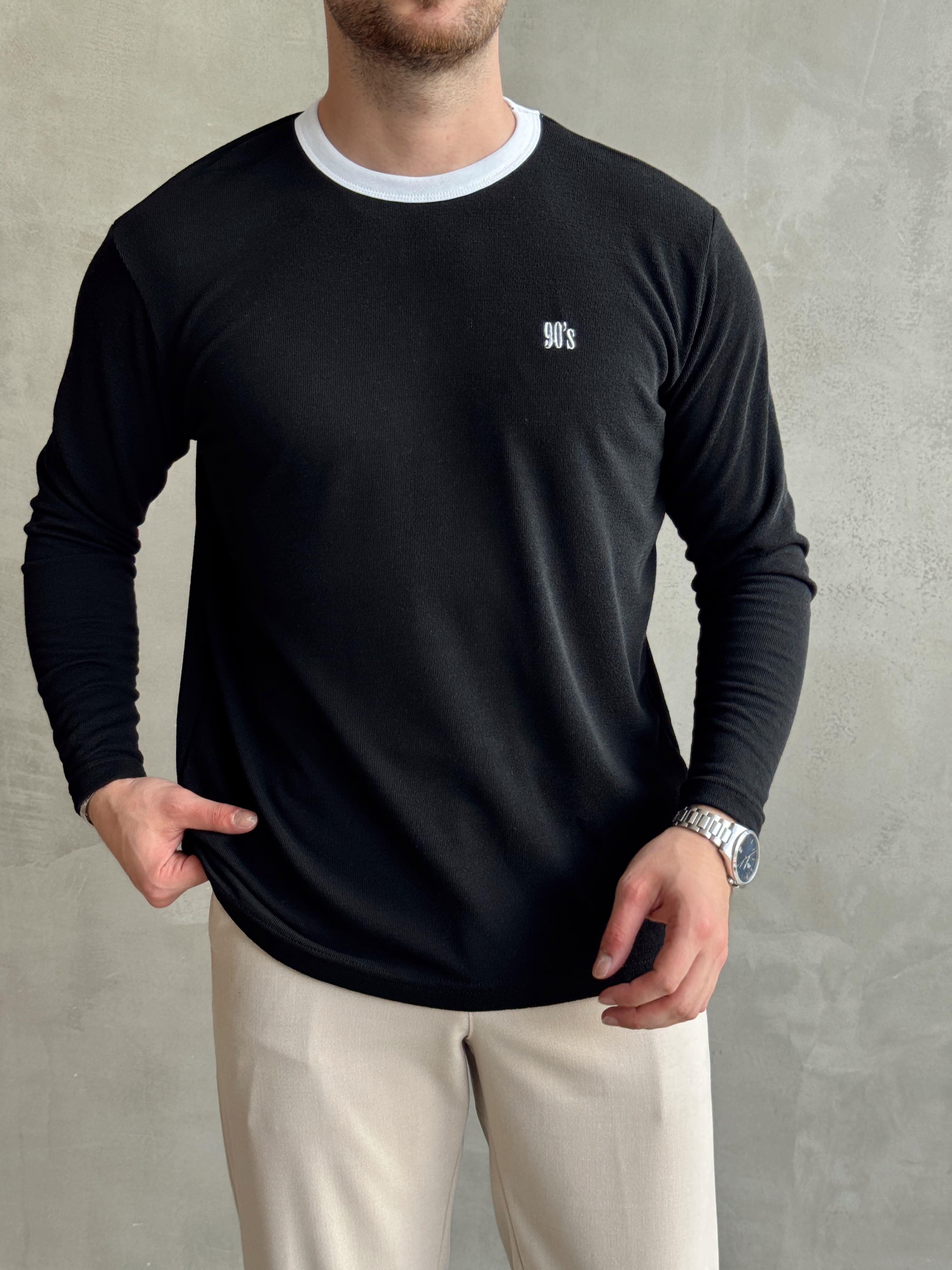 Erkek Premium Yüksek Kalite Regular Fit Bisiklet Yaka 90's İşleme Detay Triko Kazak-Siyah(E1478)