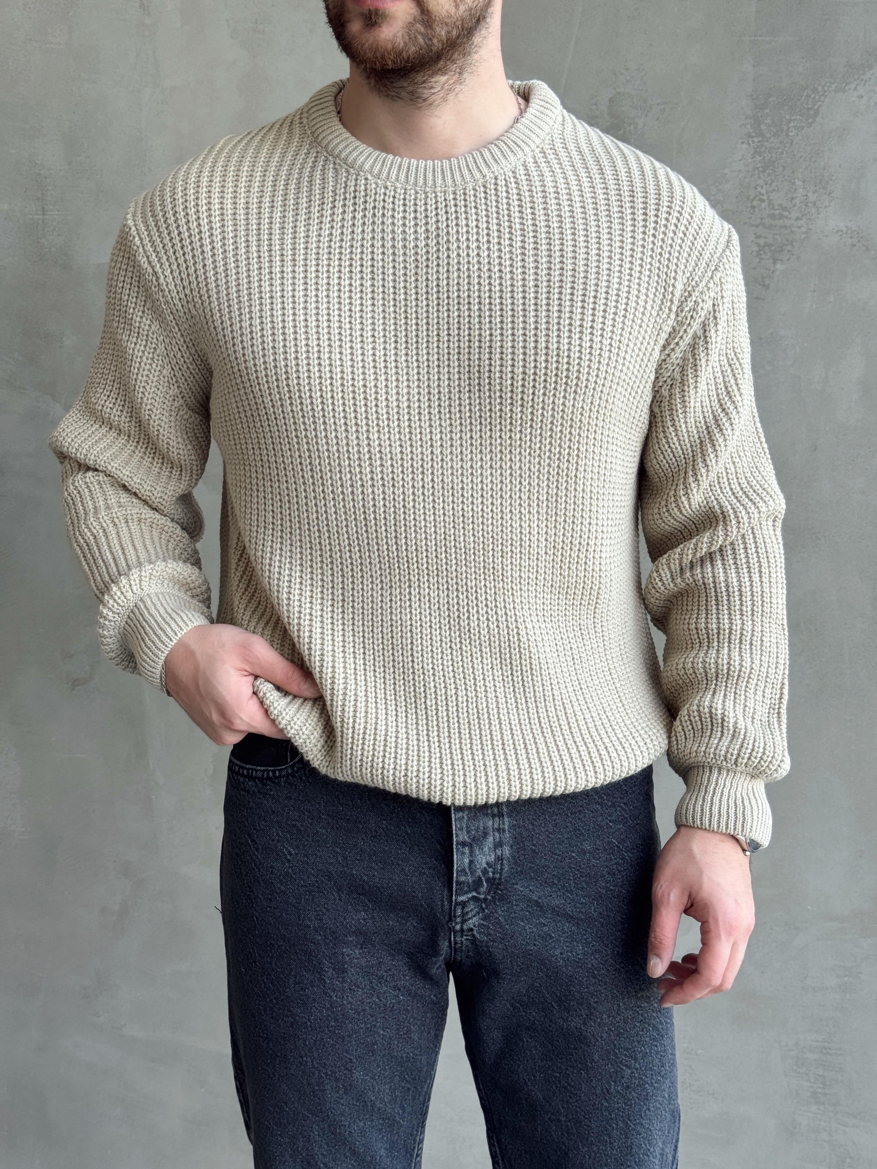 Tanım : Erkek Yüksek Kalite Oversize Kalıp Bisiklet Yaka Selanik Örme Örgü Detaylı Triko Kazak