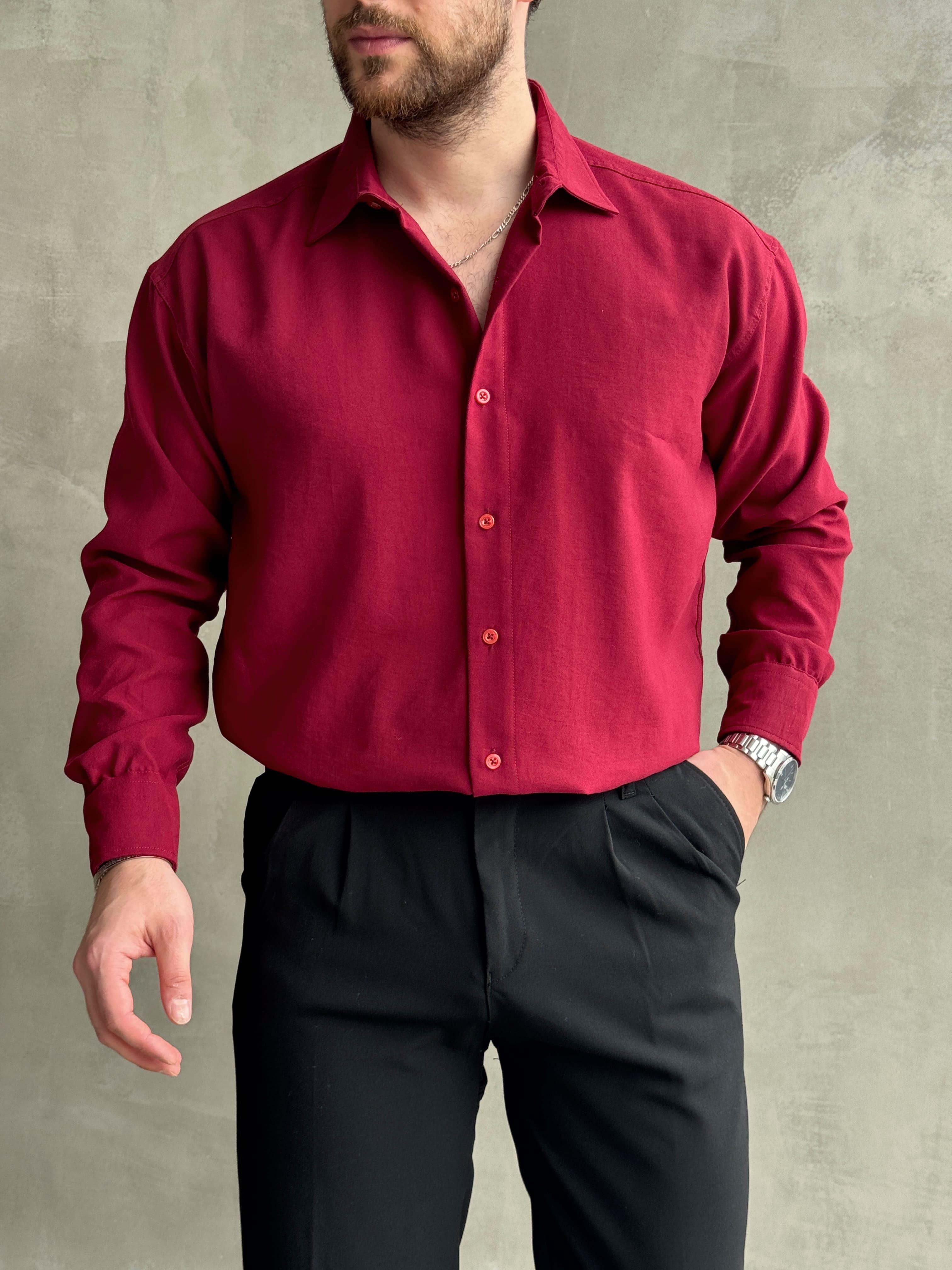 Erkek Yüksek Kalite Oversize Kalıp Kışlık Modal Kumaş Gömlek-Bordo(E1508)